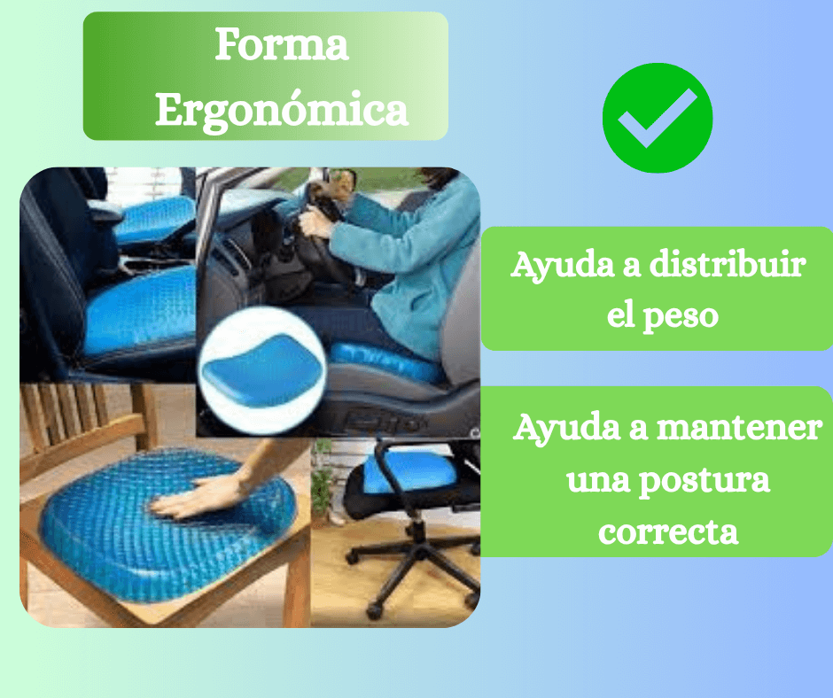 Imagina disfrutar de tu sillón favorito, manejar sin molestias o pasar horas sentado sin esa presión que molesta tanto. Alivia dolores de cadera y sacro, mejora la postura y mantiene todo fresco y cómodo, incluso en días calurosos.